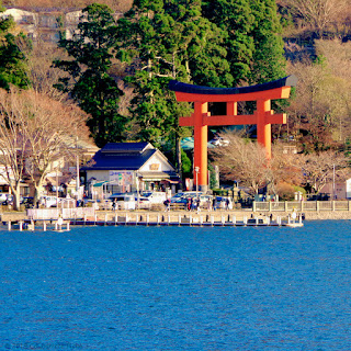 Gate No. 2 of about 6 huge torii gates that lead the way to Hakone Shrine. Unfortunately, modernization of the lake's harbor starting back in the 1960s has become a commercial eyesore and tourist trap if viewed from across the other side of the harbor.